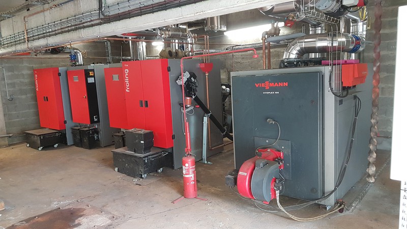 2x200 kW granulés – Réseau de chaleur – Gestion technique centralisée – Aspiration des cendres